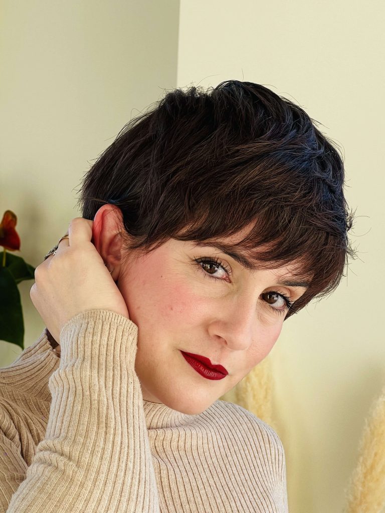 - Pixie clásico: Es el estilo original del corte pixie, con el cabello corto en la parte posterior y en los lados, y un poco más largo en la parte superior para darle un aspecto despeinado pero elegante.